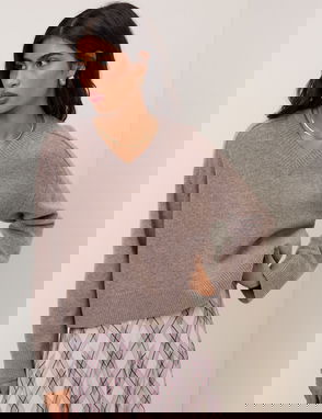 Brown V-Neck Wool Jumper