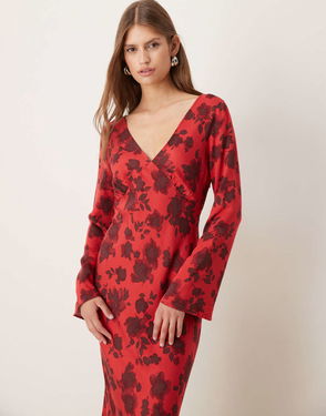 Romy Flare Sleeve Mini Dress In Burgundy Spot