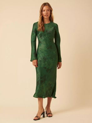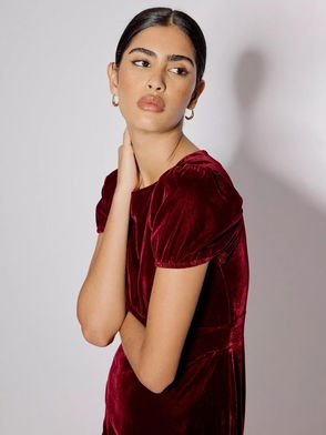 Scoop Neck Long Sleeve Midi Dress In Burgundy