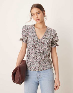 Arden Ruffle Boho Blouse Co-ord In Chocolate