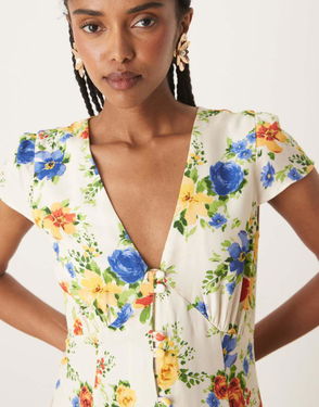 Plus Felicia Ruffle Detail Midi Dress In Green Spot