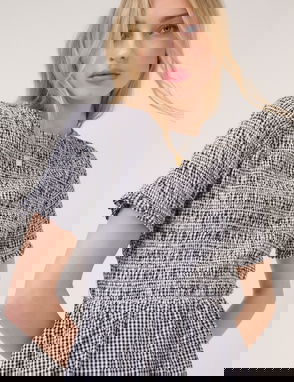 Burgundy Gingham Shirred Kinsley Midi Dress