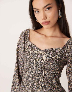 Winslet Sweetheart Neck Scallop Collar And Bow Detail Top In Floral Print