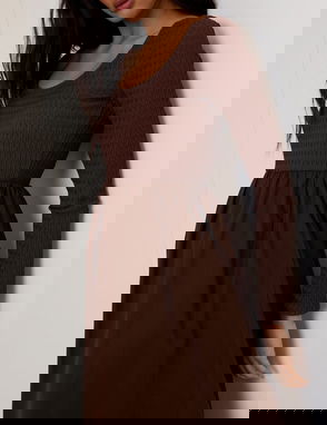 Blue Denim Balloon Sleeve Gemini Shift Mini Dress