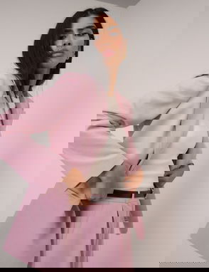 Cord V Neck Pinafore Button Side Mini Dress In Pink