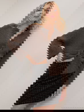 Brown Wool Blend Crochet Trim V-Neck Cardigan