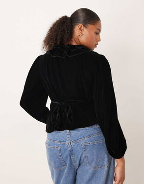 Cropped Velvet Quilted Jacket With Tie Front In Black