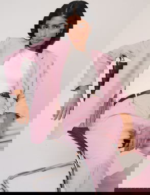 Pink Single Breasted Twill Blazer