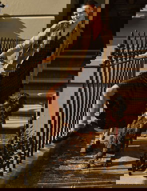 Brown Single Breasted Herringbone Coat