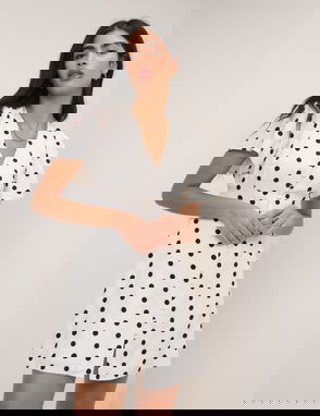 Petite Luna Ruched Waist Polka Dot Midi Dress