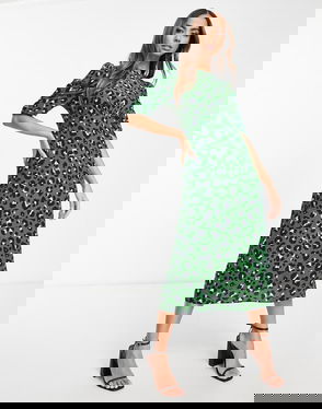 Luna V Neck Ruched Waist Button Front Midaxi Dress