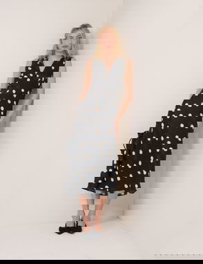 Floral Jacquard Tie Neck Fifi Midi Dress