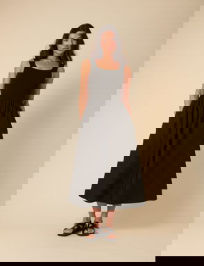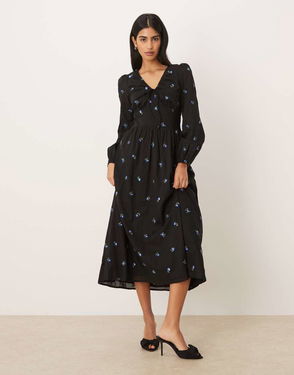 Petite Imogen Cotton Shirred Bodice Balloon Sleeve Midi Dress