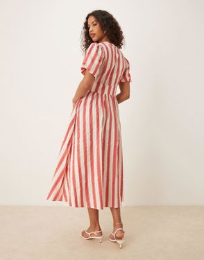 Starlight Puff Sleeve Midi Dress In Red And White Stripe
