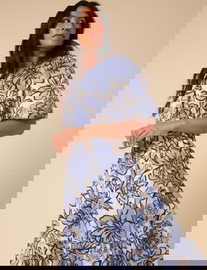 Blue Floral Puff Sleeve Zelda Midi Dress
