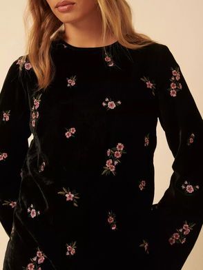 Sutton Embroidered Floral Mini Dress, Black/Multi