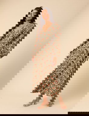 Ditsy Floral Puff Sleeve Cora Midi Dress