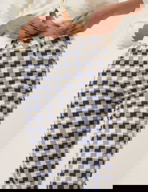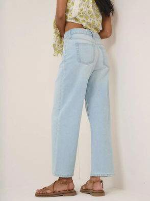 High Rise Scallop Trim Cropped Palazzo Jeans