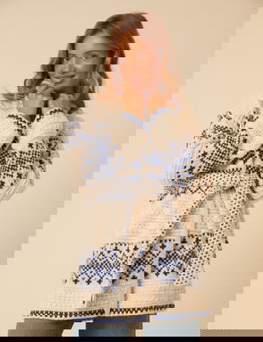 Cream Fair Isle Chunky Knit Cardigan