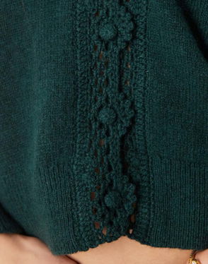 NC X TBCo Green Cable Knit Embroidered Wool Cardigan