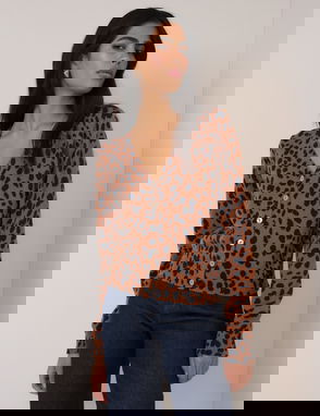 Brown Leopard Print Long Sleeve V-Neck Cardigan