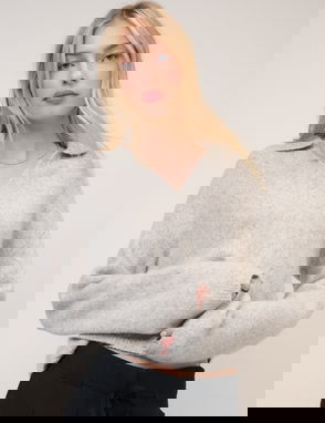 Brown Wool Blend Crochet Trim V-Neck Cardigan