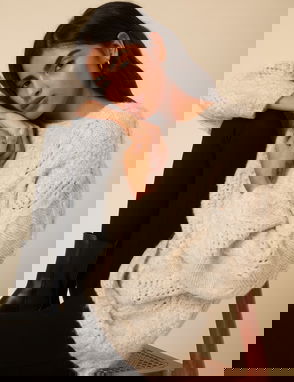 Light Grey Slash Neck Bobble Stitch Oversized Jumper