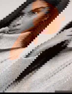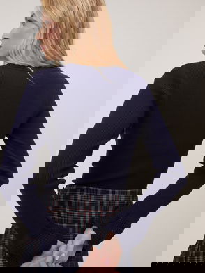Broderie Yoke Cotton Rib Knit Jumper, Ivory