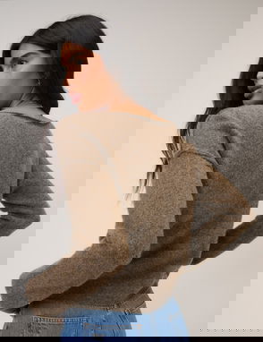 Brown Wool Blend Crochet Trim V-Neck Cardigan