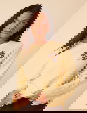 NC X TBCo Yellow Check Floral Embroidered Wool Jumper