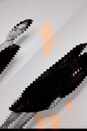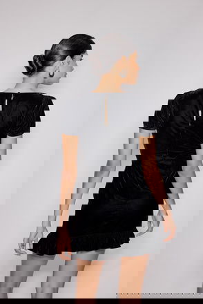 Black Velvet Balloon Sleeve Aquarius Mini Dress