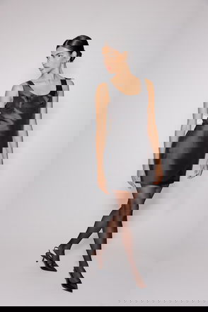 Black Velvet Drop Waist Leo Mini Dress