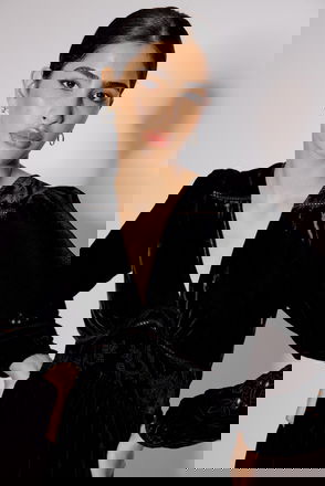 Black Velvet Balloon Sleeve Aquarius Mini Dress