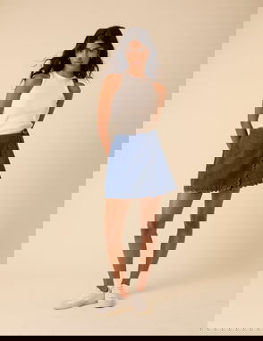 Scallop Denim Wrap Mini Skirt Co-Ord