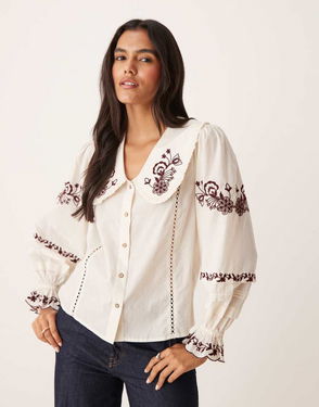 Augusta Button Up Blouse With Oversized Collar In Ivory