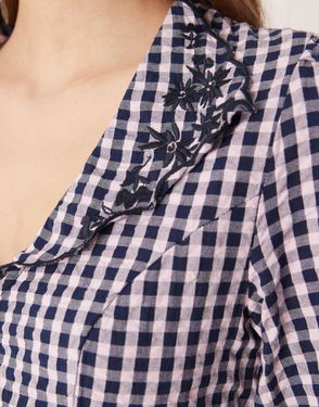 Sienna Embroidered Collar Mini Dress With Button Front In Blue & Pink Check