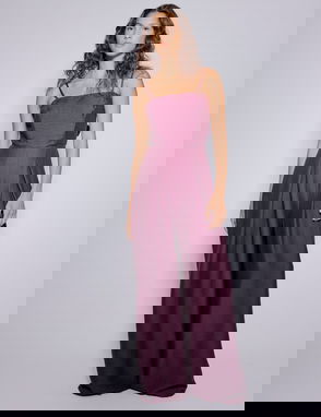 Rory Bandeau Textured Open Tie Back Wide Leg Jumpsuit In Plum