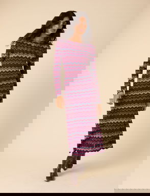 Heavy Mesh Scarf Neck Detail Jersey Midi Dress