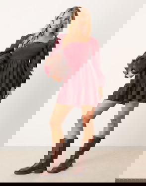 Patras Cord Mini Dress With Balloon Sleeve