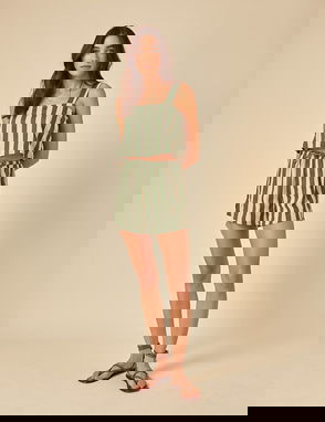Tara Gauze Ruffle Detail Shorts Co-ord In Chocolate