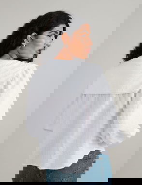 Edie Puff Sleeve Cotton Blouse, Burgundy