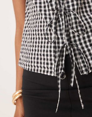 Tessa Tie Detail Sleeveless Top In Mono Check