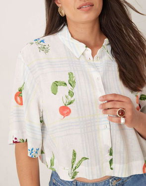 Plus Bennie Cropped Shirt In Fruit Check Print