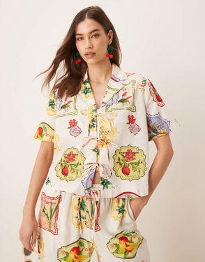 Harper Tie Detail Shirt Co-ord In Postcard Fruit Print
