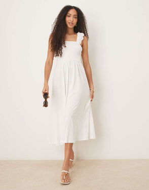 Rita Ruffle Shoulder Broderie Midi Dress In White