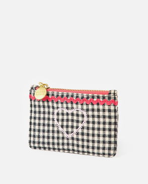 Black & Cream Gingham Zipped Card Holder