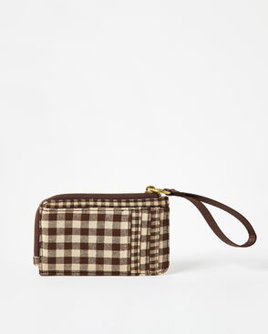 Chocolate Brown Gingham Zipped Card Holder