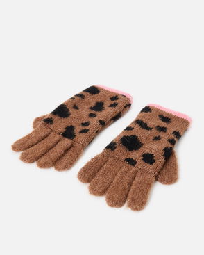 Brown & Black Spotty Animal Print Knitted Gloves