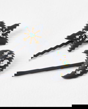 Laurel Star & Moon Stone Black Hair Slides Set Of Two