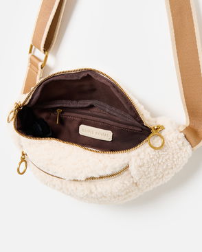 Lexi Cream Faux Shearling Double Zip Belt Bag